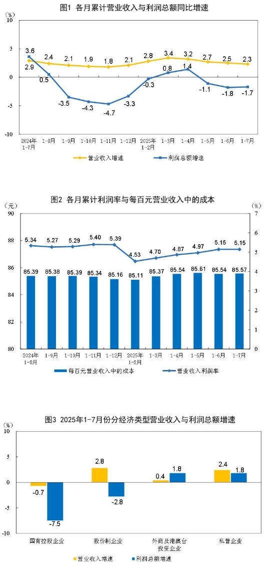 7月份,規(guī)模以上工業(yè)企業(yè)利潤(rùn)同比下降1.5%。